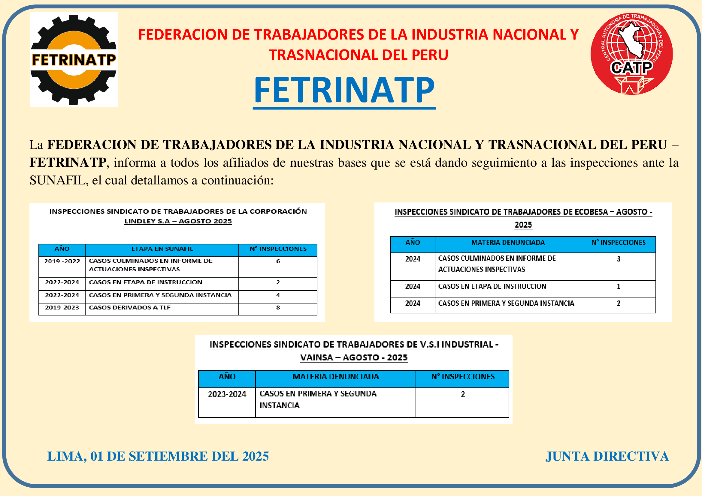 INFORME DE SEGUIMIENTO DE INSPECCIONES EN SUNAFIL DE NUESTRAS BASES